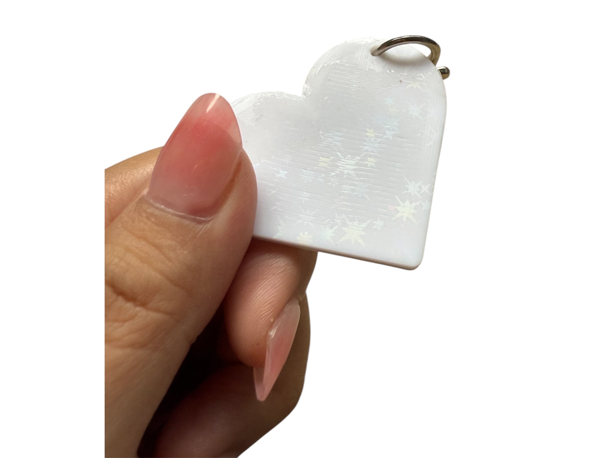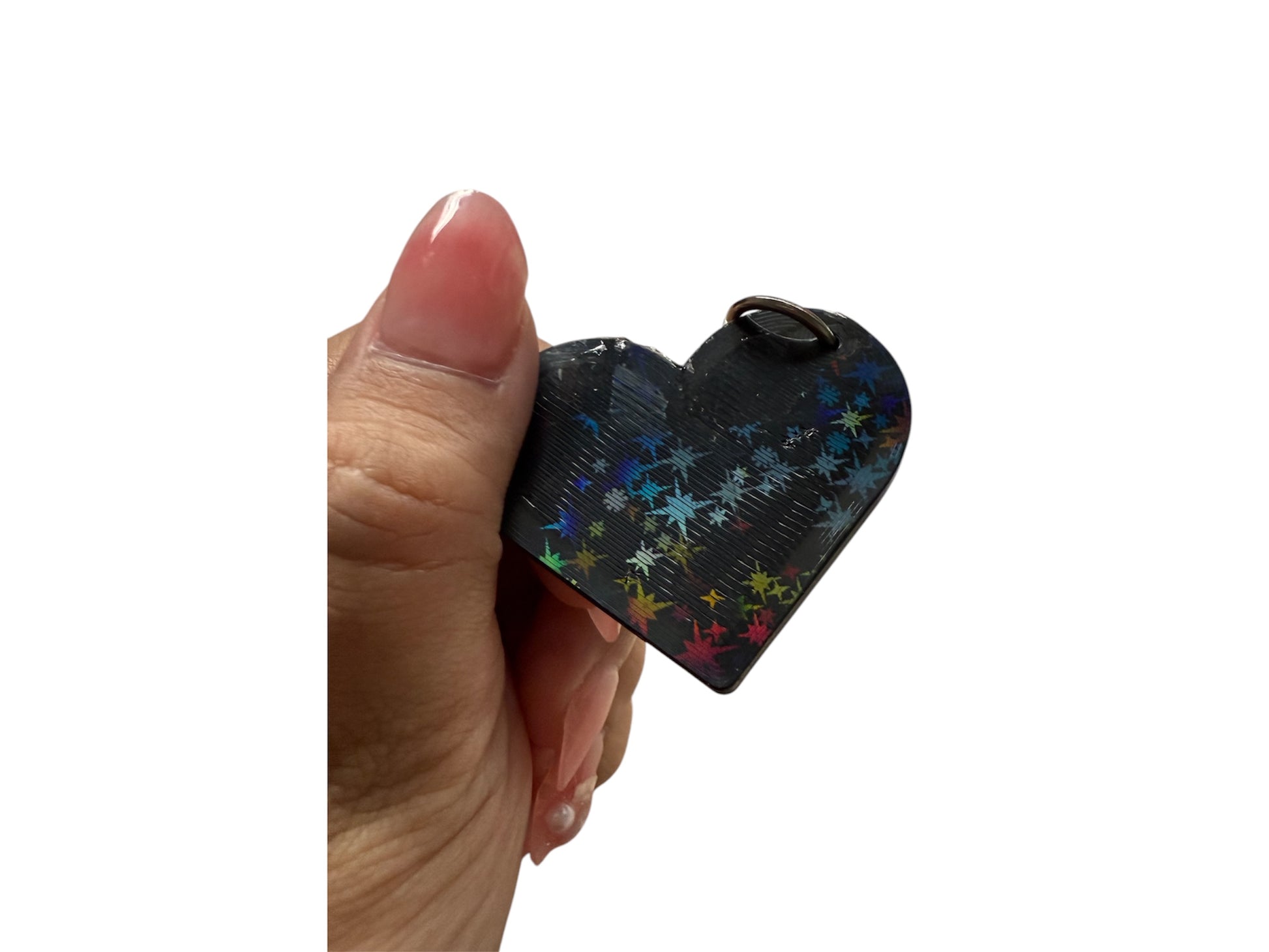 Our heart-shaped Edgit Tag is equipped with an NFC tag for enhanced functionality. Quickly and easily share information with a simple scan using any NFC-enabled device. Perfect for professionals looking for a convenient and modern way to share their portfolio, contact information, and more. One of the side is holographic sparkle surface.